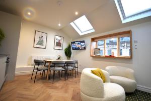 Located less than 1 km from Chetham's Library, CITYeSCAPE - 2BR Apt En-suite Sofa Bed NQ is a holiday home in Manchester's Northern Quarter district featuring two bedrooms and two bathrooms. This non-smoking property includes a living room with a TV and a fully equipped kitchen with modern appliances such as a dishwasher and an oven.