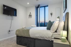Located just 600 metres from AO Arena, Manchester City Centre, AO Arena, Apartment with gym offers a one-bedroom accommodation featuring a balcony and stunning view. This apartment includes one room and provides free Wi-Fi throughout the property.
