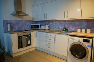 This modern apartment includes two bedrooms and two bathrooms equipped with baths and complimentary toiletries such as shampoo, conditioner and soap. Guests can enjoy a fully fitted kitchen featuring an oven, microwave, toaster and refrigerator. Additional conveniences include a washing machine, tumble dryer, electric kettle as well as heating for added comfort.