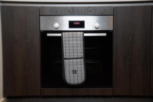 The accommodation includes a living room with a flat-screen TV equipped with streaming services, along with one bedroom furnished with one bed and one futon. Guests can prepare meals in the fully equipped kitchen featuring an oven, stovetop, refrigerator, dishwasher and electric kettle. The bathroom offers a shower alongside hairdryer and conditioner amenities. Additional room conveniences include heating, an iron for clothes ironing, linens and towels as well as a clothes rack.