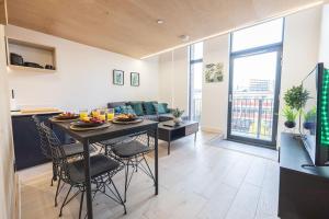 The property is situated within walking distance of several landmarks including Bridgewater Hall at a 15-minute walk and the Opera House Manchester just 1.5 km away. Other nearby attractions include John Rylands Library, Albert Square, Royal Exchange Theatre, The Palace Theatre, Manchester Central Library and Manchester Art Gallery. For travelers arriving by air, Manchester Airport is located 16 km from the apartment.