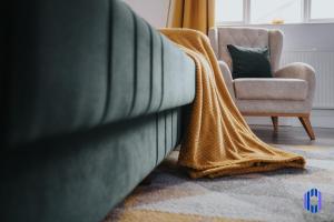 Accommodation includes five bedrooms, two bathrooms equipped with both a walk-in shower and a bath, as well as one living room featuring a sofa bed. The fully fitted kitchen contains an oven, microwave, stovetop, refrigerator, kitchenware and tea and coffee making facilities. Additional in-room amenities include heating, soundproof walls, an iron with ironing service available upon request, linens including non-feather pillows, towels and laundry service.