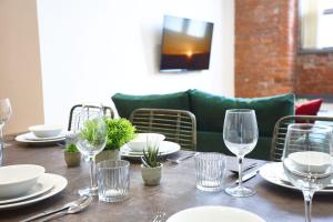 The apartment sits within easy reach of several notable landmarks including Canal Street at 1.4 km, Manchester Apollo at 1.8 km, Etihad Stadium and Manchester Art Gallery both approximately 1.9 km away, as well as Chetham's Library which is located 2 km from the property. Manchester Airport is situated 17 km from the suite.